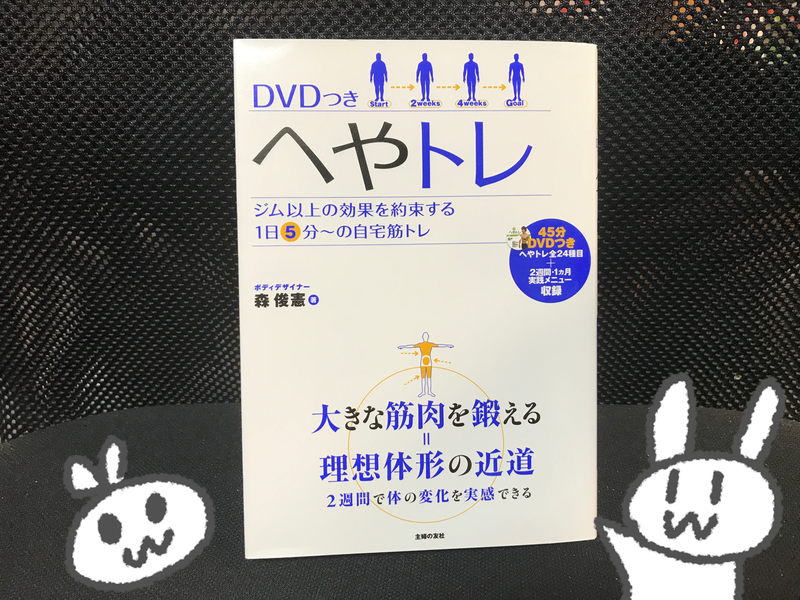 そんな折、くま吉さんが『DVDつき へやトレ』を紹介されていたので、渡りに船だったのです。ざざっと書いてある内容を読み、「燃費の悪いカラダになろう!」という話に「素晴らしい!」と唸るしかありませんでした。何のことかというと、筋肉をつけることで基礎代謝をアップさせ、ほっといてもカロリーを消費するようにすればええんやで、という話です。食べる量は同じでも、基礎代謝が上がれば体重は減るのです。