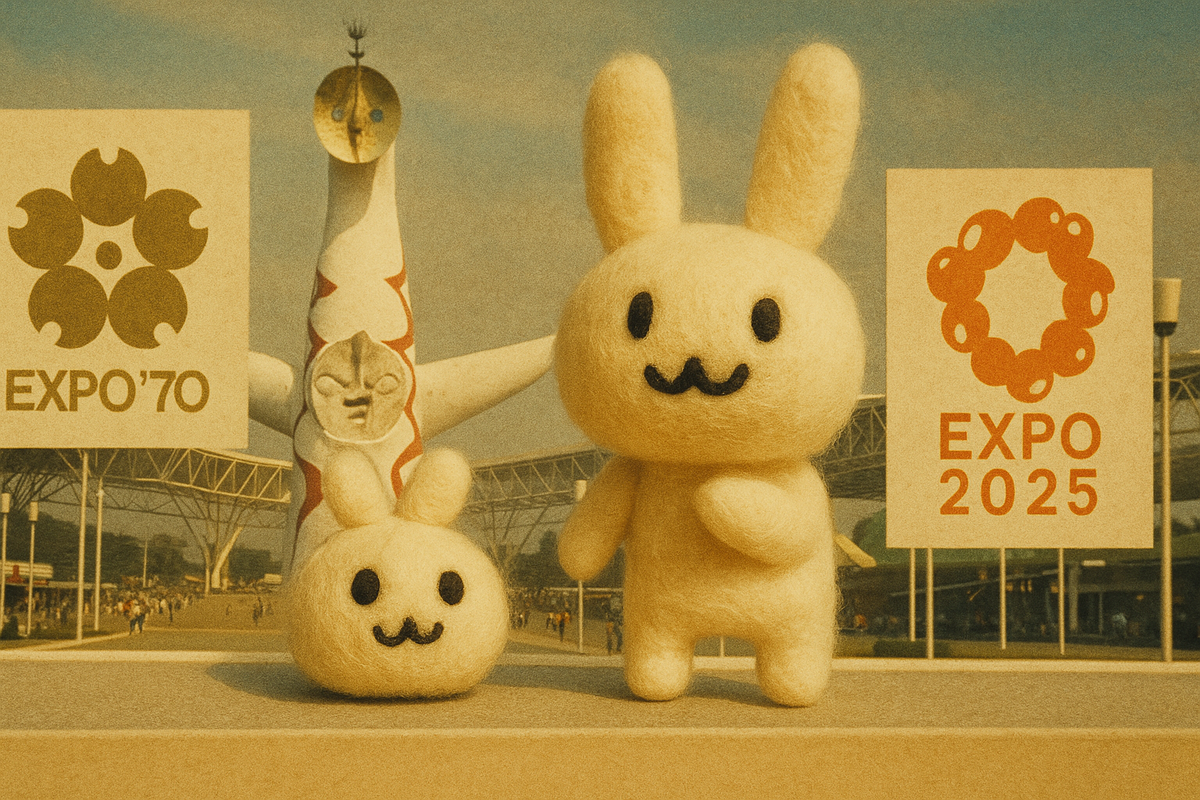 そして、大阪に住んでいながら結局万博には行かなかった私ですが、ChatGPTに「このお人形と1970年の大阪版爆と今年の大阪万博のコラボレーション画像を作ってください。比率は横16:縦9でお願いします。」と依頼してみました。さてどうなることでしょう。